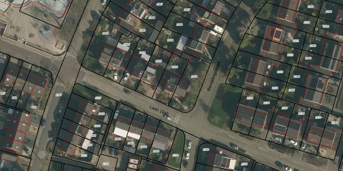Laan 1945 9 is gelegen op kadastraal perceel WEU00B2026. Deze kadastrale aanduiding is uniek en wordt gebruikt door het Kadaster om eigendomsrechten en andere zakelijke rechten vast te leggen. Het perceel maakt onderdeel uit van de kadastrale gemeente Weurt.