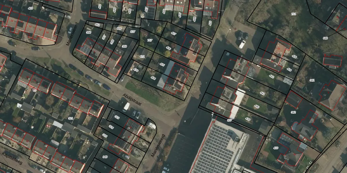 Het perceel waarop Mariënweerd 13 staat heeft een oppervlakte van 260 m². Dit is een middelgroot perceel. De perceeloppervlakte wordt geregistreerd door het Kadaster. Gedetailleerde informatie over de maten van dit perceel kunt u vinden in het rapport Kadastrale kaart met maatvoering van Mariënweerd 13.