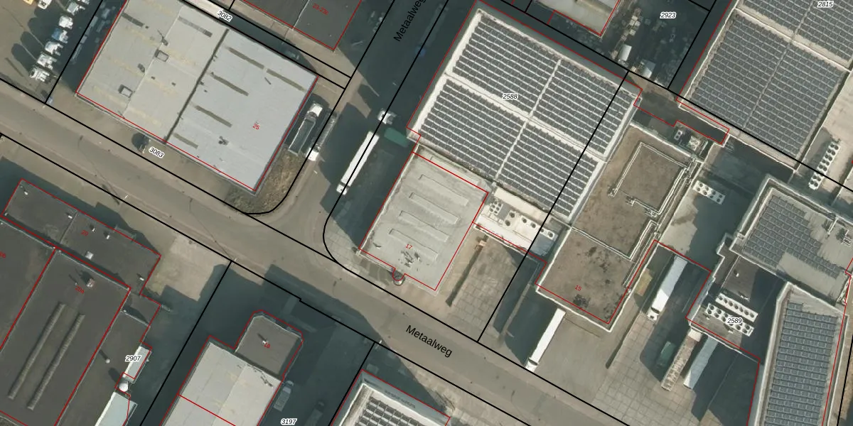 Het perceel waarop Metaalweg 17 staat heeft een oppervlakte van 3298 m². Dit is een zeer groot perceel. De perceeloppervlakte wordt geregistreerd door het Kadaster. Gedetailleerde informatie over de maten van dit perceel kunt u vinden in het rapport Kadastrale kaart met maatvoering van Metaalweg 17.