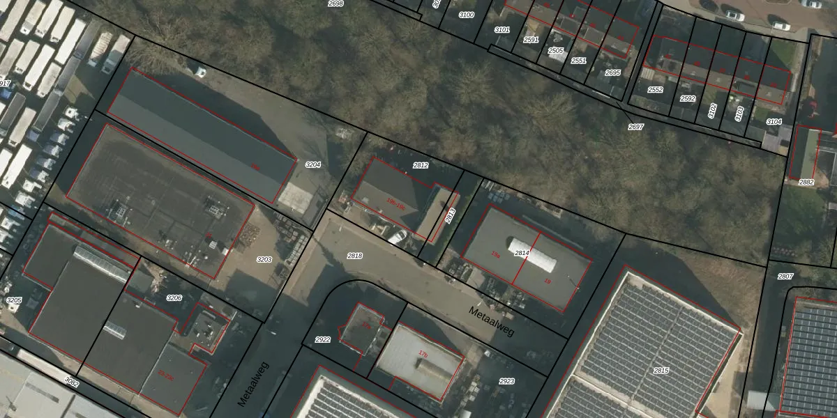 Metaalweg 19-c is gelegen op kadastraal perceel WEU00B2812. Deze kadastrale aanduiding is uniek en wordt gebruikt door het Kadaster om eigendomsrechten en andere zakelijke rechten vast te leggen. Het perceel maakt onderdeel uit van de kadastrale gemeente Weurt.
