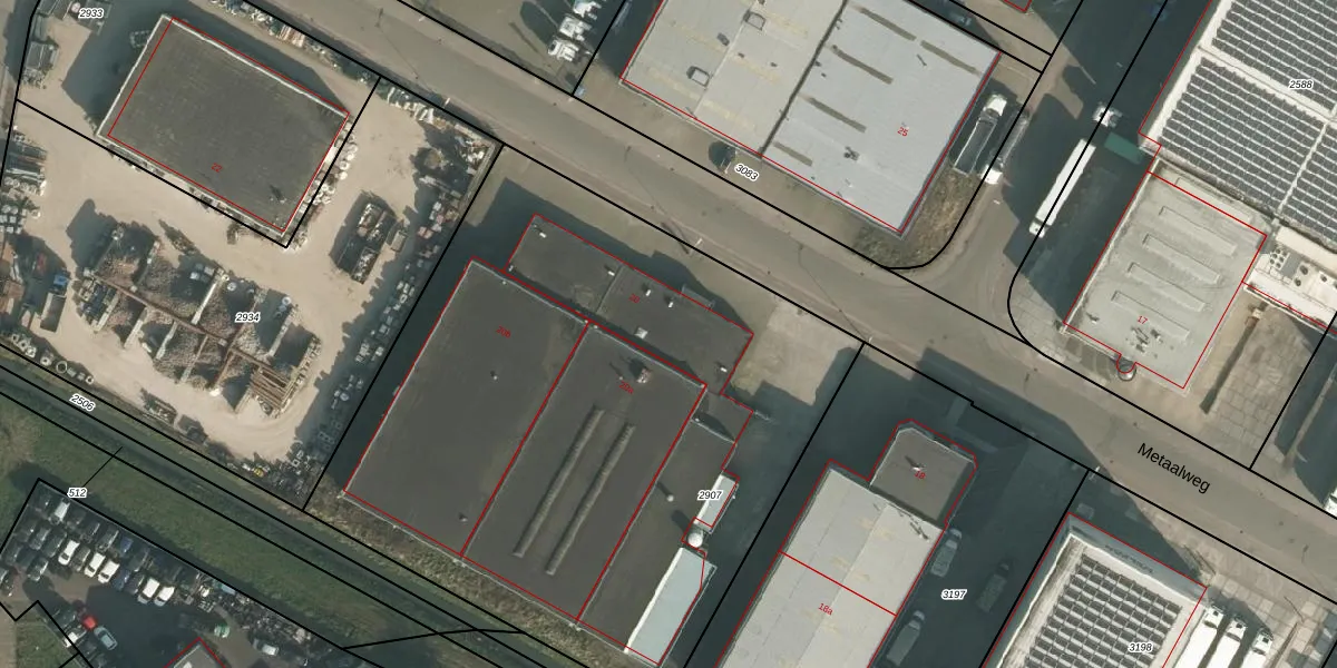 Het perceel waarop Metaalweg 20 staat heeft een oppervlakte van 3840 m². Dit is een zeer groot perceel. De perceeloppervlakte wordt geregistreerd door het Kadaster. Gedetailleerde informatie over de maten van dit perceel kunt u vinden in het rapport Kadastrale kaart met maatvoering van Metaalweg 20.