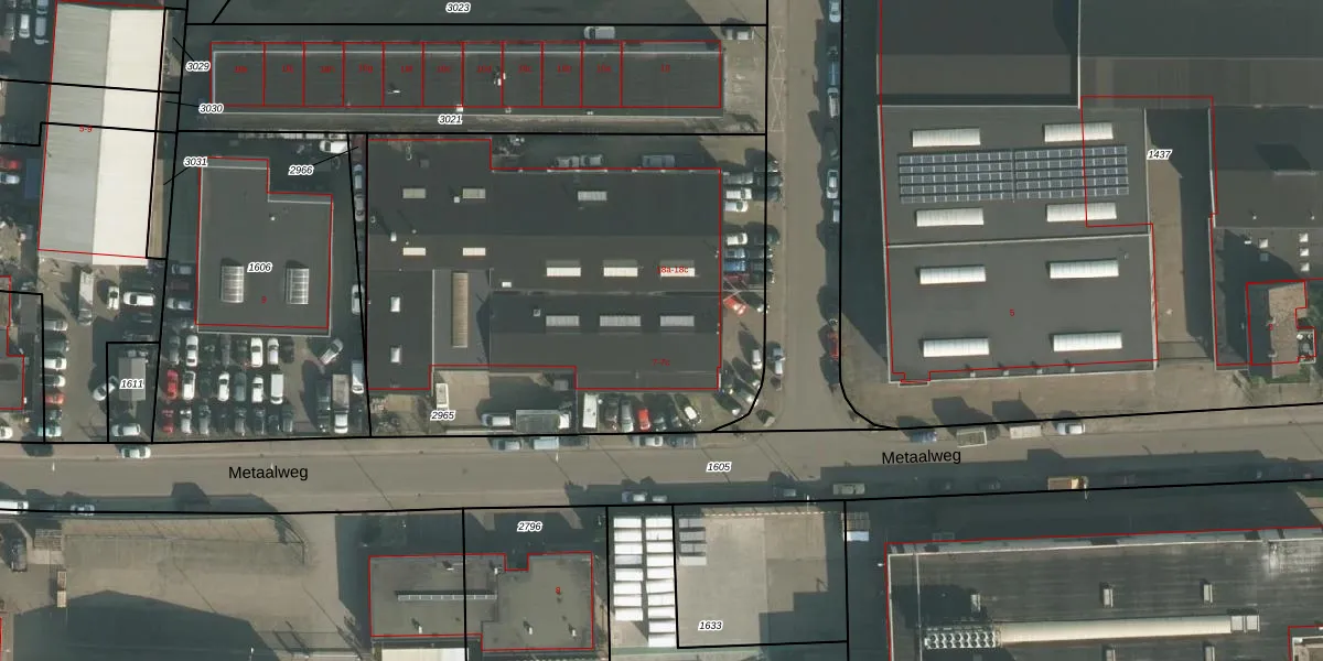 Het perceel waarop Metaalweg 7 staat heeft een oppervlakte van 2712 m². Dit is een zeer groot perceel. De perceeloppervlakte wordt geregistreerd door het Kadaster. Gedetailleerde informatie over de maten van dit perceel kunt u vinden in het rapport Kadastrale kaart met maatvoering van Metaalweg 7.