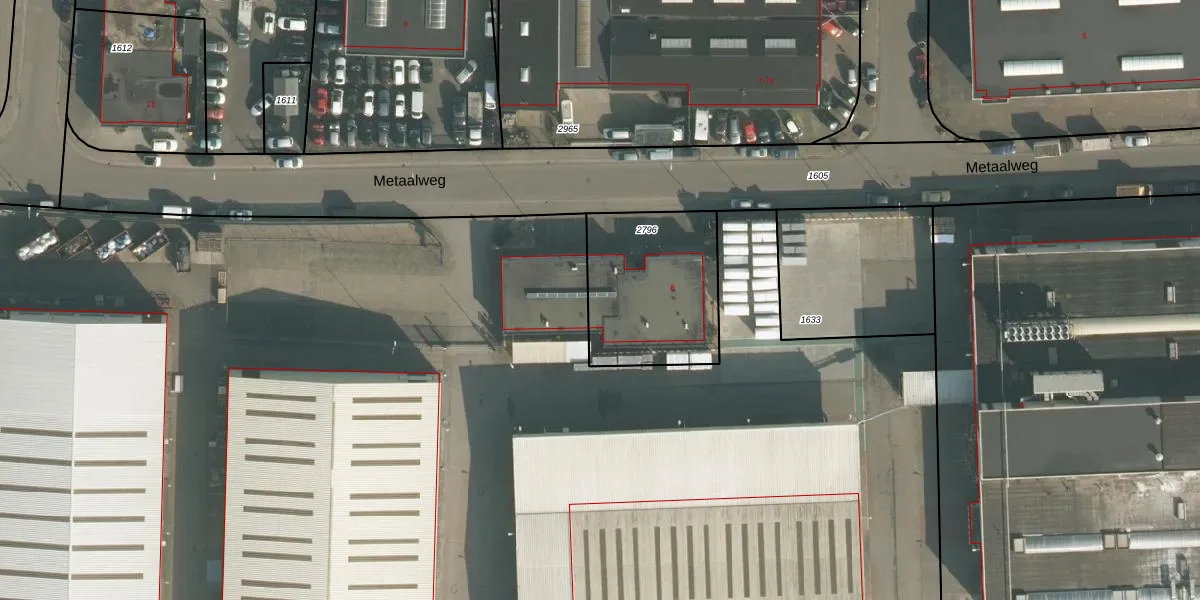 Het perceel waarop Metaalweg 8 staat heeft een oppervlakte van 560 m². Dit is een groot perceel. De perceeloppervlakte wordt geregistreerd door het Kadaster. Gedetailleerde informatie over de maten van dit perceel kunt u vinden in het rapport Kadastrale kaart met maatvoering van Metaalweg 8.
