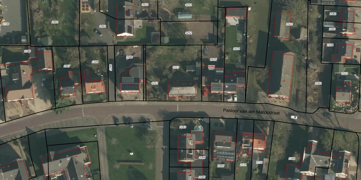 Het perceel waarop Pastoor van der Marckstraat 17 staat heeft een oppervlakte van 942 m². Dit is een groot perceel. De perceeloppervlakte wordt geregistreerd door het Kadaster. Gedetailleerde informatie over de maten van dit perceel kunt u vinden in het rapport Kadastrale kaart met maatvoering van Pastoor van der Marckstraat 17.