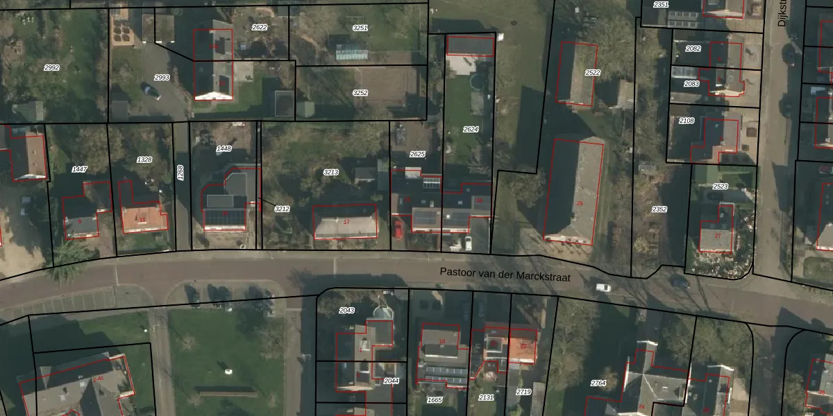 Het perceel waarop Pastoor van der Marckstraat 21 staat heeft een oppervlakte van 429 m². Dit is een groot perceel. De perceeloppervlakte wordt geregistreerd door het Kadaster. Gedetailleerde informatie over de maten van dit perceel kunt u vinden in het rapport Kadastrale kaart met maatvoering van Pastoor van der Marckstraat 21.