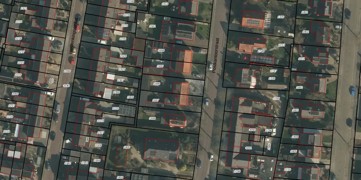 Het perceel waarop Postkantoorstraat 24 staat heeft een oppervlakte van 314 m². Dit is een groot perceel. De perceeloppervlakte wordt geregistreerd door het Kadaster. Gedetailleerde informatie over de maten van dit perceel kunt u vinden in het rapport Kadastrale kaart met maatvoering van Postkantoorstraat 24.