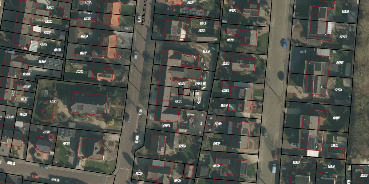 Het perceel waarop Postkantoorstraat 31-b staat heeft een oppervlakte van 25 m². Dit is een klein perceel. De perceeloppervlakte wordt geregistreerd door het Kadaster. Gedetailleerde informatie over de maten van dit perceel kunt u vinden in het rapport Kadastrale kaart met maatvoering van Postkantoorstraat 31-b.
