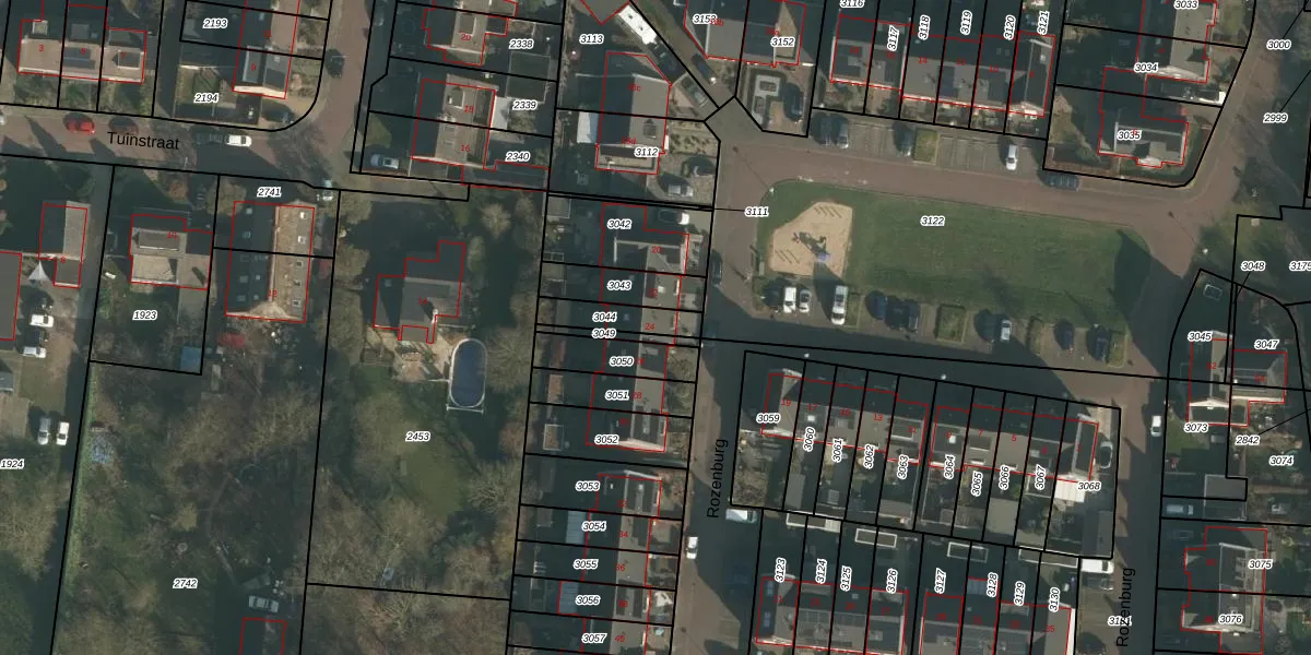 Het perceel waarop Rozenburg 24 staat heeft een oppervlakte van 105 m². Dit is een middelgroot perceel. De perceeloppervlakte wordt geregistreerd door het Kadaster. Gedetailleerde informatie over de maten van dit perceel kunt u vinden in het rapport Kadastrale kaart met maatvoering van Rozenburg 24.