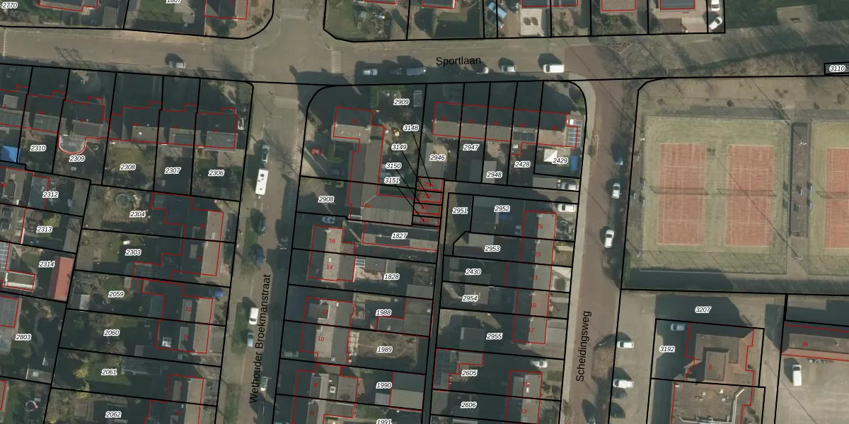 Scheidingsweg 25-c is gelegen op kadastraal perceel WEU00B3150. Deze kadastrale aanduiding is uniek en wordt gebruikt door het Kadaster om eigendomsrechten en andere zakelijke rechten vast te leggen. Het perceel maakt onderdeel uit van de kadastrale gemeente Weurt.