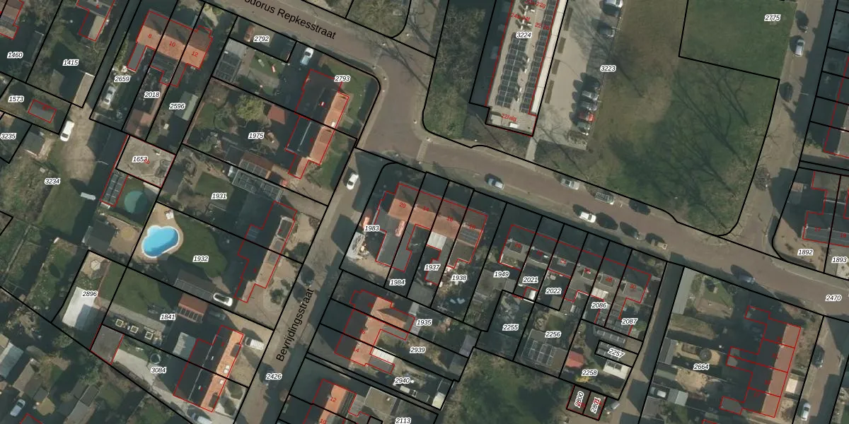 Het perceel waarop Theodorus Repkesstraat 14 staat heeft een oppervlakte van 173 m². Dit is een middelgroot perceel. De perceeloppervlakte wordt geregistreerd door het Kadaster. Gedetailleerde informatie over de maten van dit perceel kunt u vinden in het rapport Kadastrale kaart met maatvoering van Theodorus Repkesstraat 14.