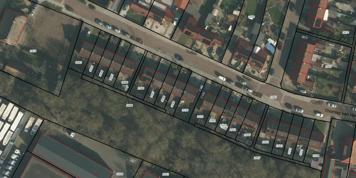 Gebruik de zoekbalk of klik op een perceel voor informatie over de adressen binnen dit perceel.