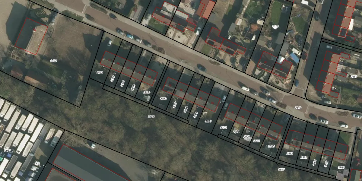 Gebruik de zoekbalk of klik op een perceel voor informatie over de adressen binnen dit perceel.