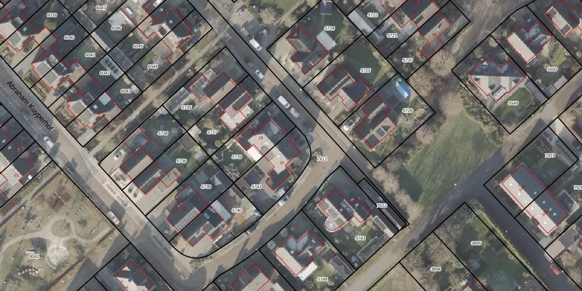 Gebruik de zoekbalk of klik op een perceel voor informatie over de adressen binnen dit perceel.