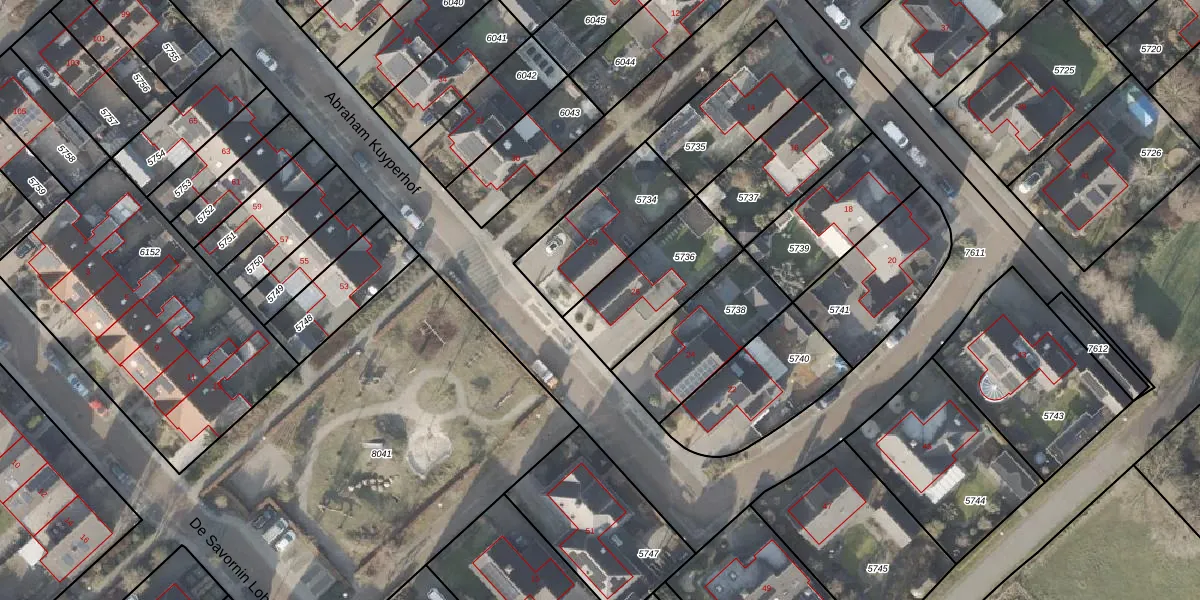 Gebruik de zoekbalk of klik op een perceel voor informatie over de adressen binnen dit perceel.