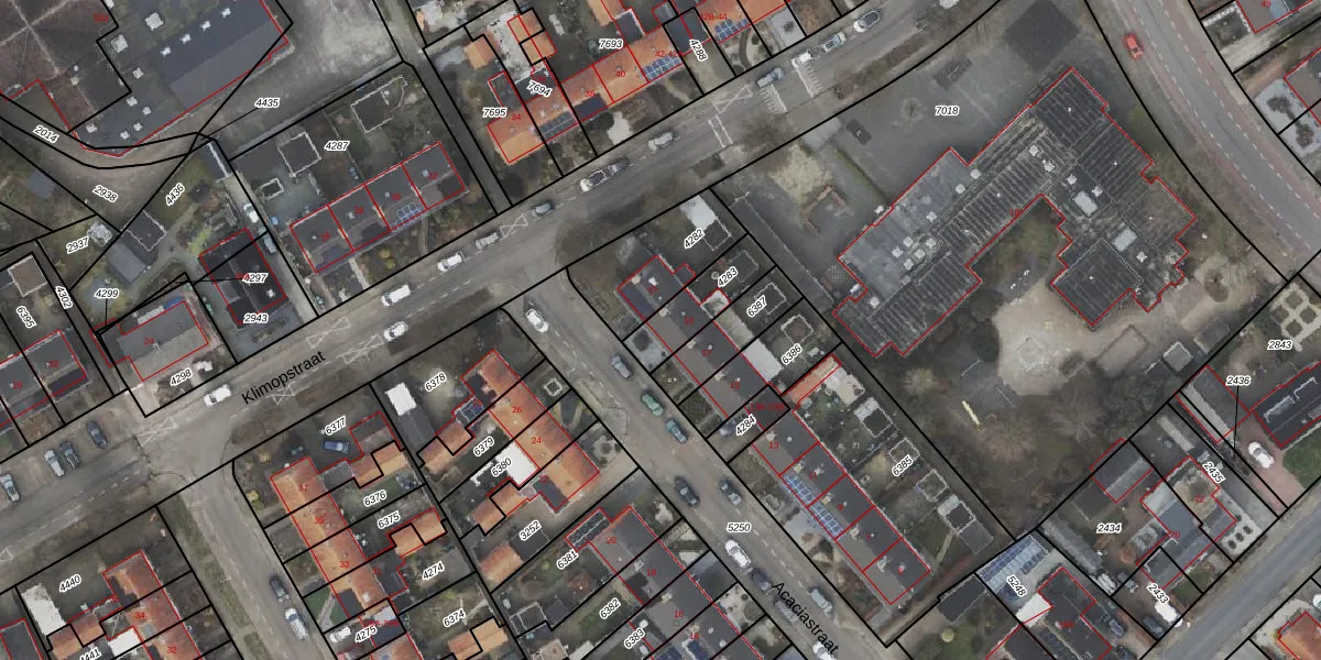 Gebruik de zoekbalk of klik op een perceel voor informatie over de adressen binnen dit perceel.