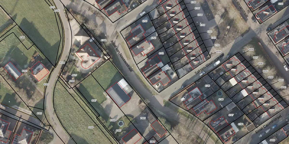 Gebruik de zoekbalk of klik op een perceel voor informatie over de adressen binnen dit perceel.