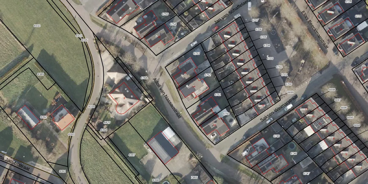 Adolf van Nassaustraat 14 is gelegen op kadastraal perceel ODB01M6752. Deze kadastrale aanduiding is uniek en wordt gebruikt door het Kadaster om eigendomsrechten en andere zakelijke rechten vast te leggen. Het perceel maakt onderdeel uit van de kadastrale gemeente Oldebroek.