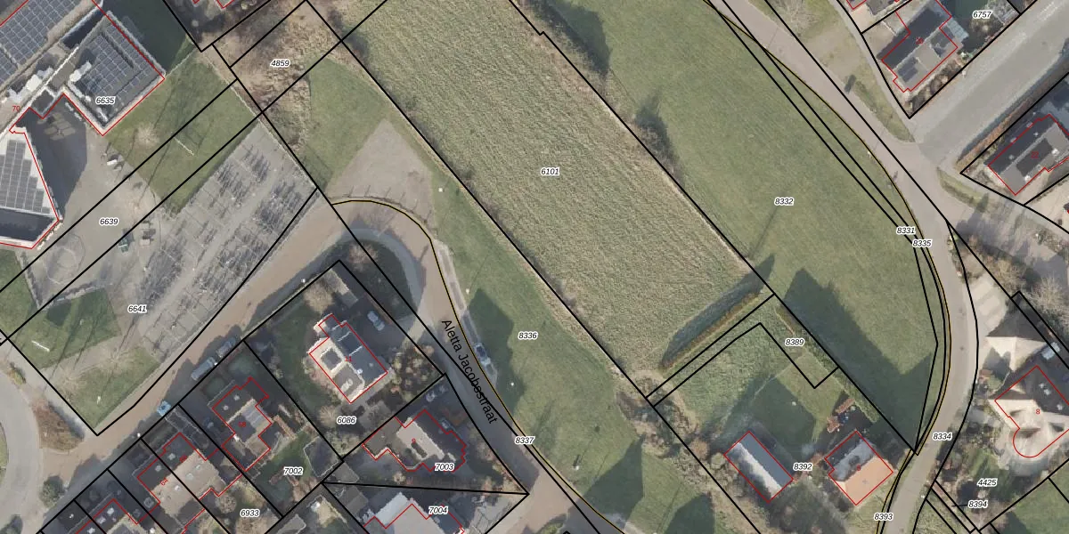 Het perceel waarop Aletta Jacobsstraat 6 staat heeft een oppervlakte van 2660 m². Dit is een zeer groot perceel. De perceeloppervlakte wordt geregistreerd door het Kadaster. Gedetailleerde informatie over de maten van dit perceel kunt u vinden in het rapport Kadastrale kaart met maatvoering van Aletta Jacobsstraat 6.