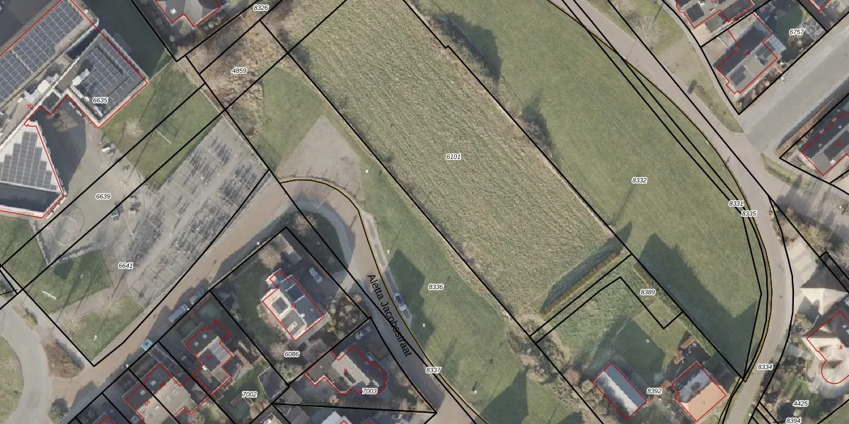 Het perceel waarop Aletta Jacobsstraat 8 staat heeft een oppervlakte van 2660 m². Dit is een zeer groot perceel. De perceeloppervlakte wordt geregistreerd door het Kadaster. Gedetailleerde informatie over de maten van dit perceel kunt u vinden in het rapport Kadastrale kaart met maatvoering van Aletta Jacobsstraat 8.