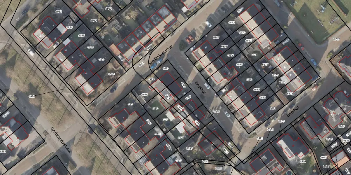 Het perceel waarop Beelhof 34 staat heeft een oppervlakte van 94 m². Dit is een klein perceel. De perceeloppervlakte wordt geregistreerd door het Kadaster. Gedetailleerde informatie over de maten van dit perceel kunt u vinden in het rapport Kadastrale kaart met maatvoering van Beelhof 34.