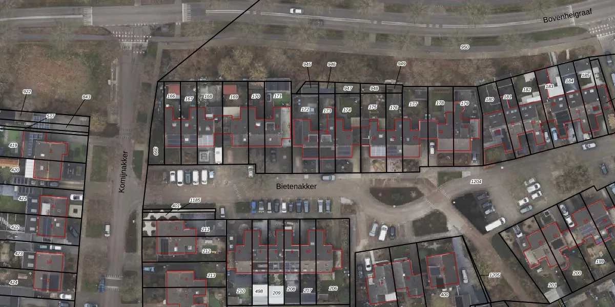Het perceel waarop Bietenakker 13 staat heeft een oppervlakte van 227 m². Dit is een middelgroot perceel. De perceeloppervlakte wordt geregistreerd door het Kadaster. Gedetailleerde informatie over de maten van dit perceel kunt u vinden in het rapport Kadastrale kaart met maatvoering van Bietenakker 13.
