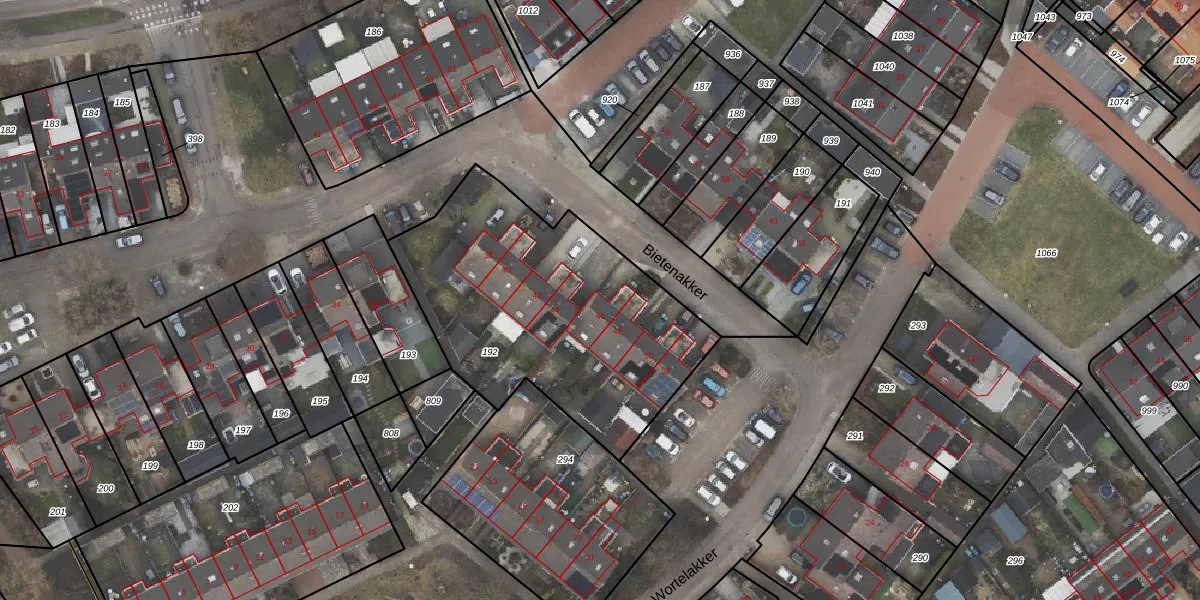 Het perceel waarop Bietenakker 46 staat heeft een oppervlakte van 1372 m². Dit is een zeer groot perceel. De perceeloppervlakte wordt geregistreerd door het Kadaster. Gedetailleerde informatie over de maten van dit perceel kunt u vinden in het rapport Kadastrale kaart met maatvoering van Bietenakker 46.