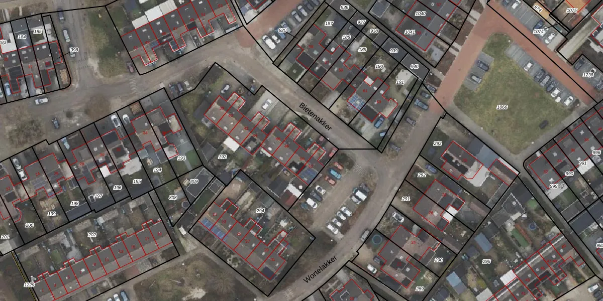 Het perceel waarop Bietenakker 50 staat heeft een oppervlakte van 1372 m². Dit is een zeer groot perceel. De perceeloppervlakte wordt geregistreerd door het Kadaster. Gedetailleerde informatie over de maten van dit perceel kunt u vinden in het rapport Kadastrale kaart met maatvoering van Bietenakker 50.