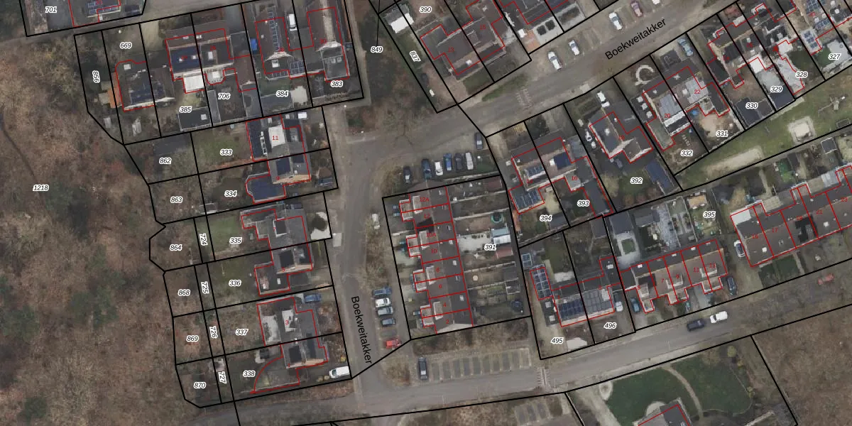 Het perceel waarop Boekweitakker 12 staat heeft een oppervlakte van 975 m². Dit is een groot perceel. De perceeloppervlakte wordt geregistreerd door het Kadaster. Gedetailleerde informatie over de maten van dit perceel kunt u vinden in het rapport Kadastrale kaart met maatvoering van Boekweitakker 12.
