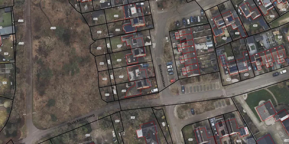 Gebruik de zoekbalk of klik op een perceel voor informatie over de adressen binnen dit perceel.