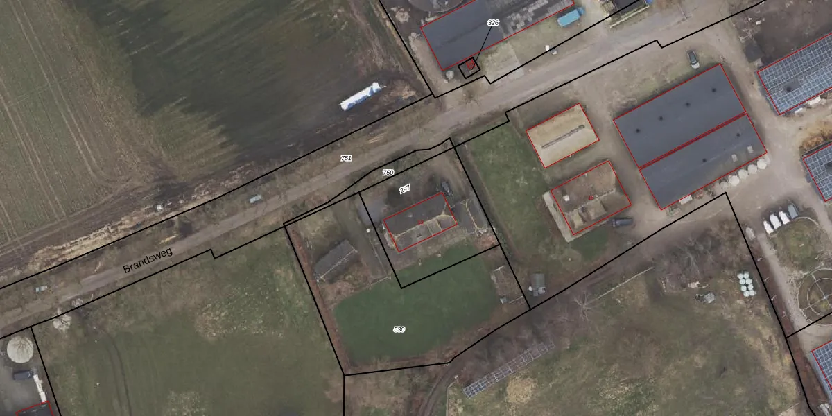 Brandsweg 13 is gelegen op kadastraal perceel ODB01P297. Deze kadastrale aanduiding is uniek en wordt gebruikt door het Kadaster om eigendomsrechten en andere zakelijke rechten vast te leggen. Het perceel maakt onderdeel uit van de kadastrale gemeente Oldebroek.