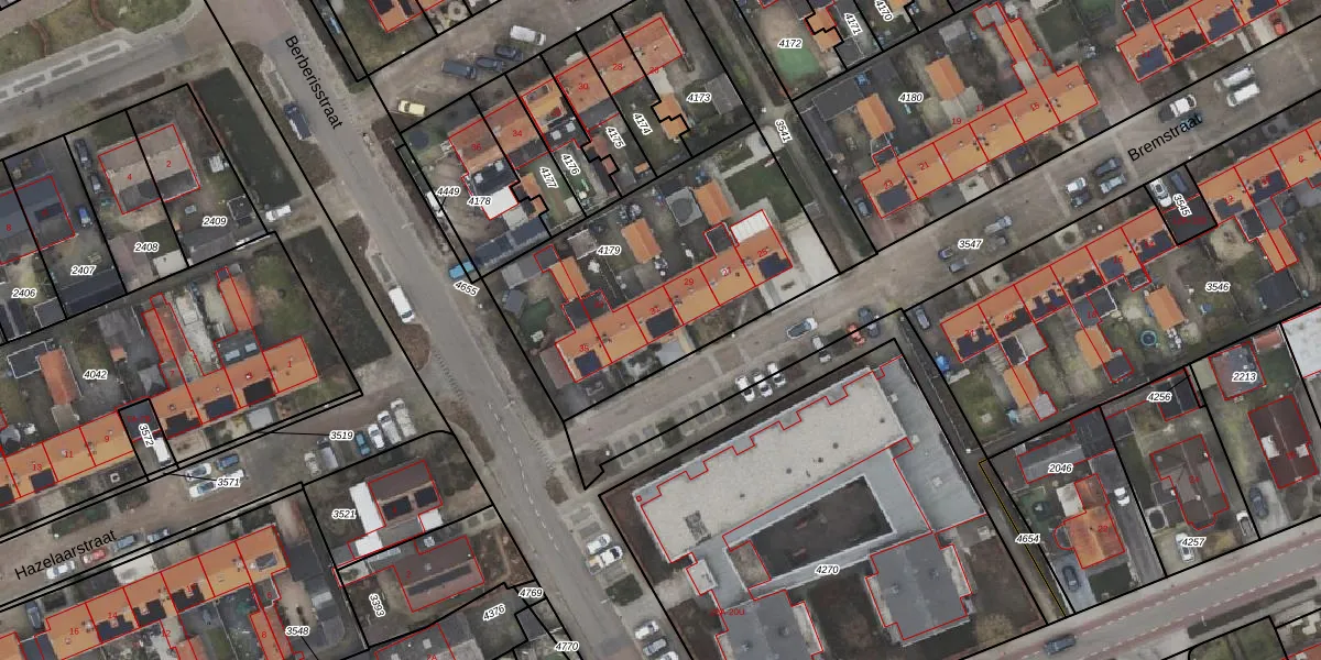 Het perceel waarop Bremstraat 31 staat heeft een oppervlakte van 1218 m². Dit is een zeer groot perceel. De perceeloppervlakte wordt geregistreerd door het Kadaster. Gedetailleerde informatie over de maten van dit perceel kunt u vinden in het rapport Kadastrale kaart met maatvoering van Bremstraat 31.