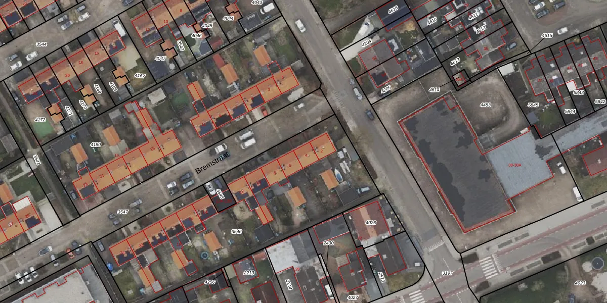 Het perceel waarop Bremstraat 4 staat heeft een oppervlakte van 2438 m². Dit is een zeer groot perceel. De perceeloppervlakte wordt geregistreerd door het Kadaster. Gedetailleerde informatie over de maten van dit perceel kunt u vinden in het rapport Kadastrale kaart met maatvoering van Bremstraat 4.