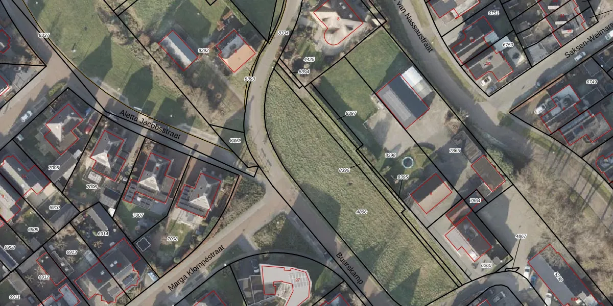 Het perceel waarop Buurskamp 16 staat heeft een oppervlakte van 1475 m². Dit is een zeer groot perceel. De perceeloppervlakte wordt geregistreerd door het Kadaster. Gedetailleerde informatie over de maten van dit perceel kunt u vinden in het rapport Kadastrale kaart met maatvoering van Buurskamp 16.