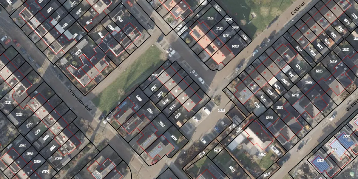 Gebruik de zoekbalk of klik op een perceel voor informatie over de adressen binnen dit perceel.