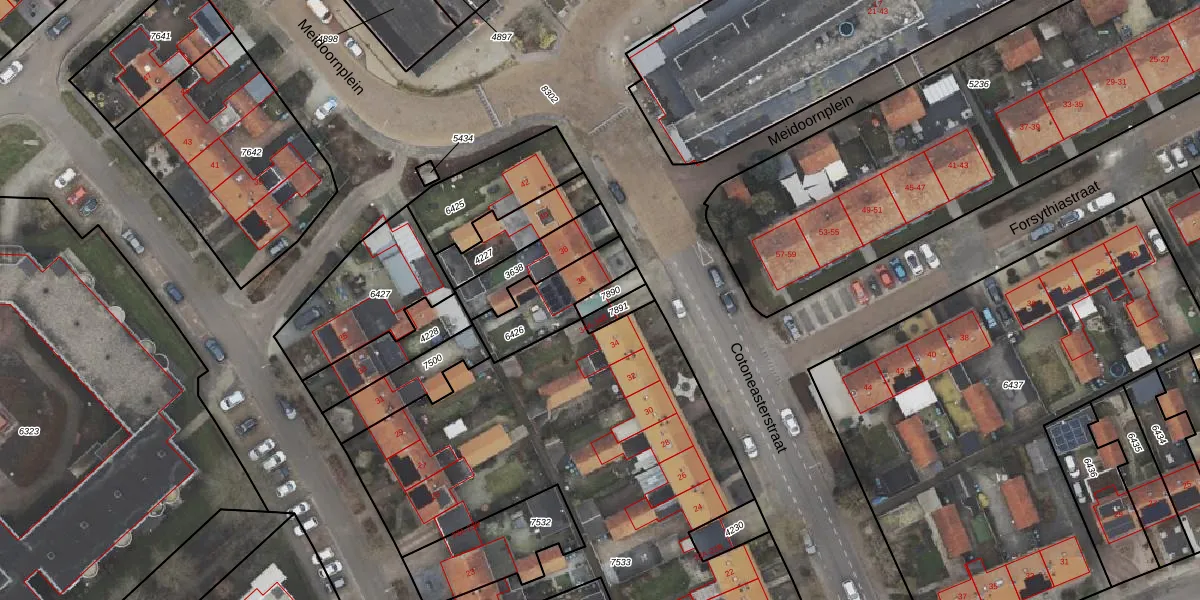 Het perceel waarop Cotoneasterstraat 34-B staat heeft een oppervlakte van 36 m². Dit is een klein perceel. De perceeloppervlakte wordt geregistreerd door het Kadaster. Gedetailleerde informatie over de maten van dit perceel kunt u vinden in het rapport Kadastrale kaart met maatvoering van Cotoneasterstraat 34-B.