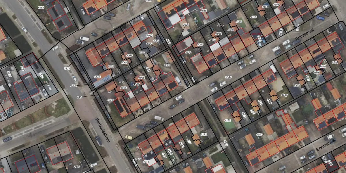 Gebruik de zoekbalk of klik op een perceel voor informatie over de adressen binnen dit perceel.