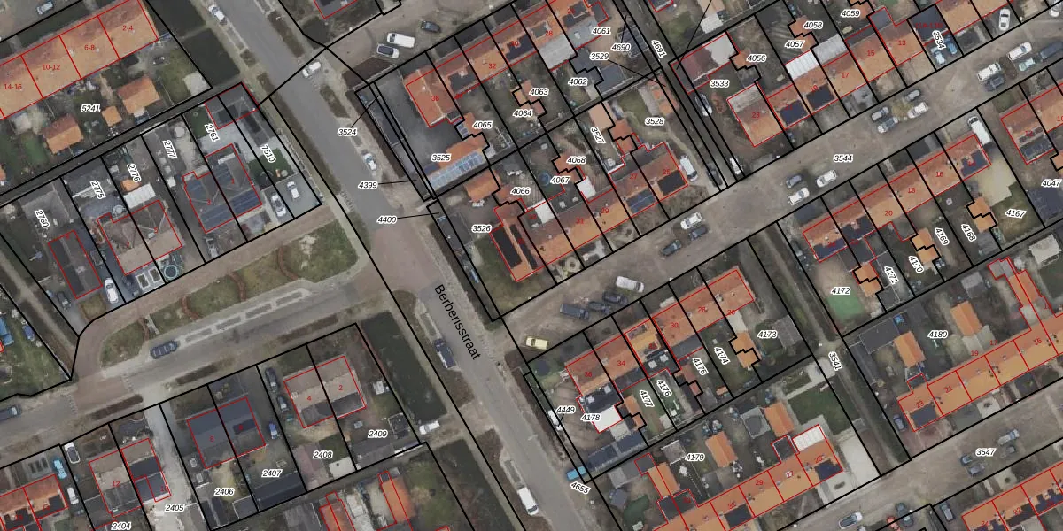 Gebruik de zoekbalk of klik op een perceel voor informatie over de adressen binnen dit perceel.