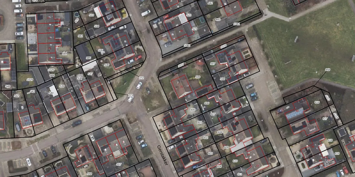Het perceel waarop Gerstakker 21 staat heeft een oppervlakte van 560 m². Dit is een groot perceel. De perceeloppervlakte wordt geregistreerd door het Kadaster. Gedetailleerde informatie over de maten van dit perceel kunt u vinden in het rapport Kadastrale kaart met maatvoering van Gerstakker 21.