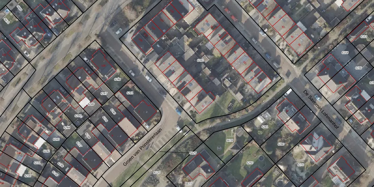 Het perceel waarop Groen van Prinstererlaan 7 staat heeft een oppervlakte van 3418 m². Dit is een zeer groot perceel. De perceeloppervlakte wordt geregistreerd door het Kadaster. Gedetailleerde informatie over de maten van dit perceel kunt u vinden in het rapport Kadastrale kaart met maatvoering van Groen van Prinstererlaan 7.