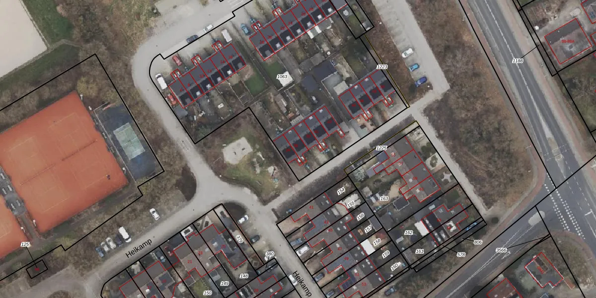 Het perceel waarop Heikamp 36 staat heeft een oppervlakte van 3166 m². Dit is een zeer groot perceel. De perceeloppervlakte wordt geregistreerd door het Kadaster. Gedetailleerde informatie over de maten van dit perceel kunt u vinden in het rapport Kadastrale kaart met maatvoering van Heikamp 36.