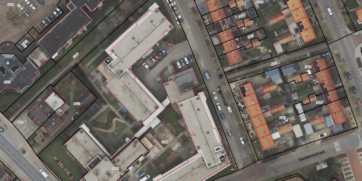 Het perceel waarop Hulststraat 22 staat heeft een oppervlakte van 7255 m². Dit is een zeer groot perceel. De perceeloppervlakte wordt geregistreerd door het Kadaster. Gedetailleerde informatie over de maten van dit perceel kunt u vinden in het rapport Kadastrale kaart met maatvoering van Hulststraat 22.