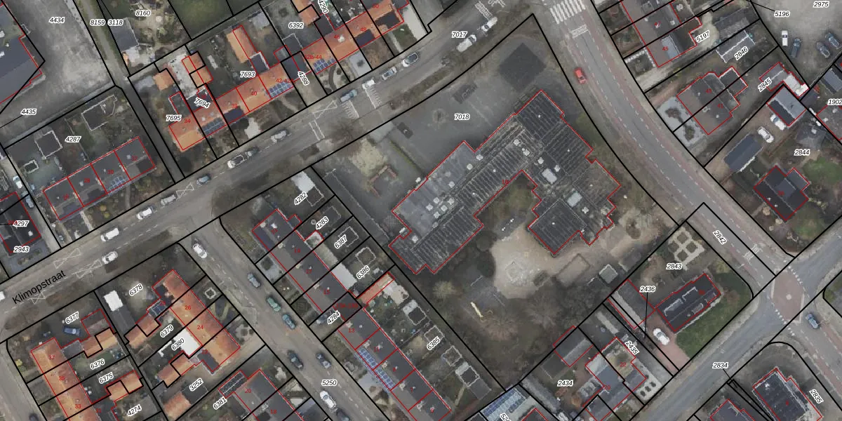 Klimopstraat 1 is gelegen op kadastraal perceel ODB01M7018. Deze kadastrale aanduiding is uniek en wordt gebruikt door het Kadaster om eigendomsrechten en andere zakelijke rechten vast te leggen. Het perceel maakt onderdeel uit van de kadastrale gemeente Oldebroek.