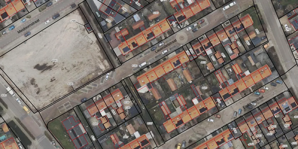Het perceel waarop Lavendelstraat 24 staat heeft een oppervlakte van 3229 m². Dit is een zeer groot perceel. De perceeloppervlakte wordt geregistreerd door het Kadaster. Gedetailleerde informatie over de maten van dit perceel kunt u vinden in het rapport Kadastrale kaart met maatvoering van Lavendelstraat 24.