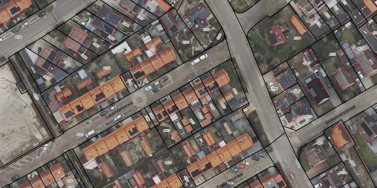 Gebruik de zoekbalk of klik op een perceel voor informatie over de adressen binnen dit perceel.