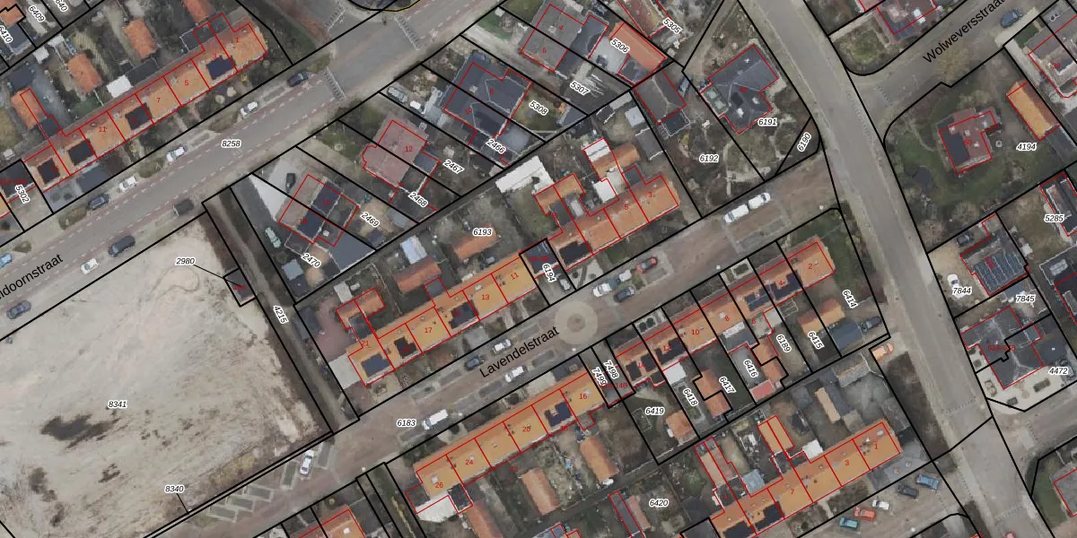 Lavendelstraat 9-B is gelegen op kadastraal perceel ODB01M6194. Deze kadastrale aanduiding is uniek en wordt gebruikt door het Kadaster om eigendomsrechten en andere zakelijke rechten vast te leggen. Het perceel maakt onderdeel uit van de kadastrale gemeente Oldebroek.