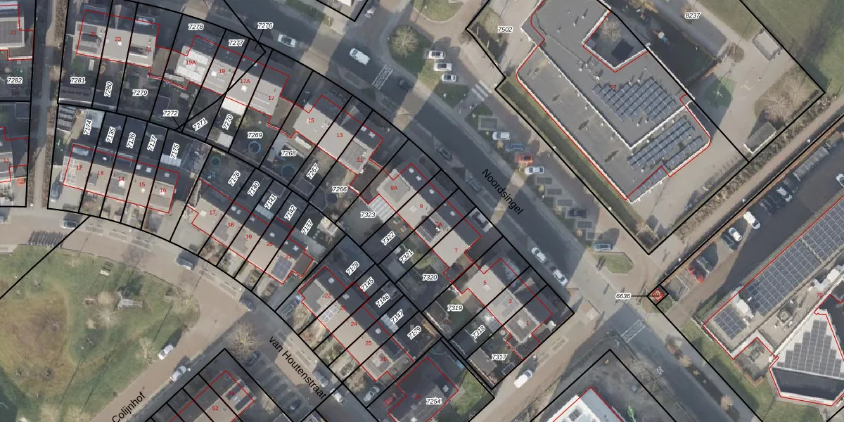 Gebruik de zoekbalk of klik op een perceel voor informatie over de adressen binnen dit perceel.
