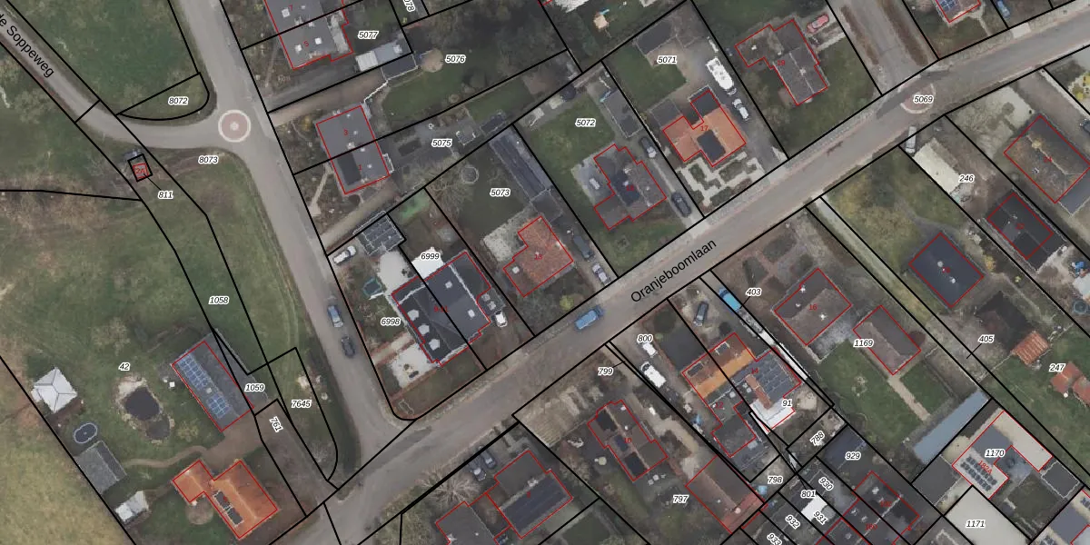 Gebruik de zoekbalk of klik op een perceel voor informatie over de adressen binnen dit perceel.
