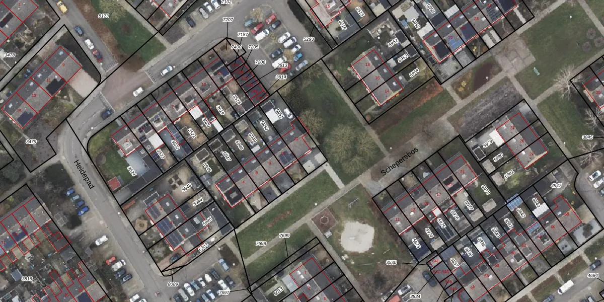 Gebruik de zoekbalk of klik op een perceel voor informatie over de adressen binnen dit perceel.