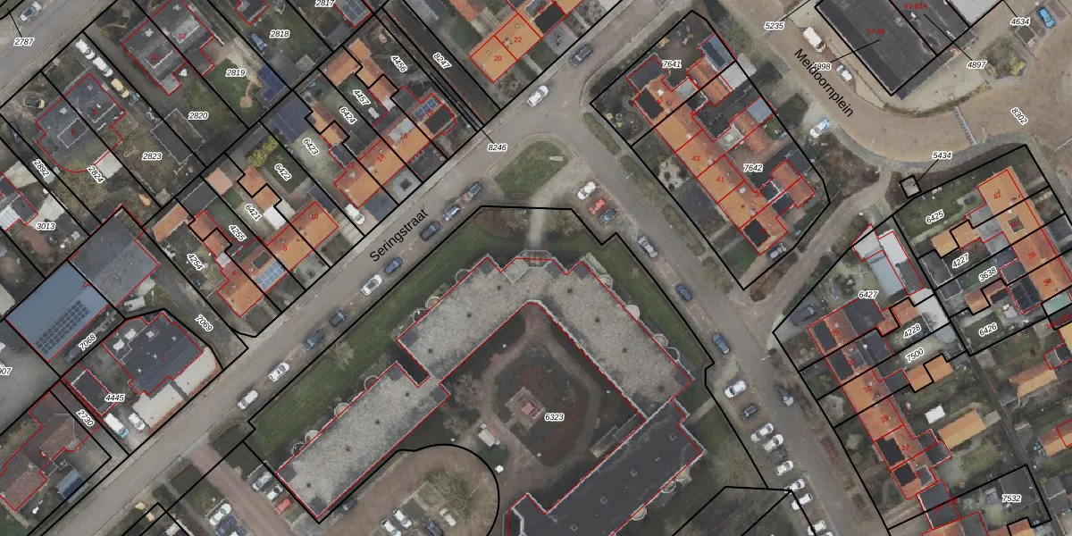 Seringstraat 1 is gelegen op kadastraal perceel ODB01M6323. Deze kadastrale aanduiding is uniek en wordt gebruikt door het Kadaster om eigendomsrechten en andere zakelijke rechten vast te leggen. Het perceel maakt onderdeel uit van de kadastrale gemeente Oldebroek.