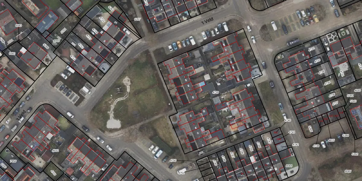 't Veld 32 is gelegen op kadastraal perceel ODB01M4739. Deze kadastrale aanduiding is uniek en wordt gebruikt door het Kadaster om eigendomsrechten en andere zakelijke rechten vast te leggen. Het perceel maakt onderdeel uit van de kadastrale gemeente Oldebroek.